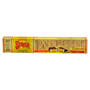 Torrone relleno de bizcocho (11%), empapado en licor Strega (7%) y cubierto de chocolate negro (48%).